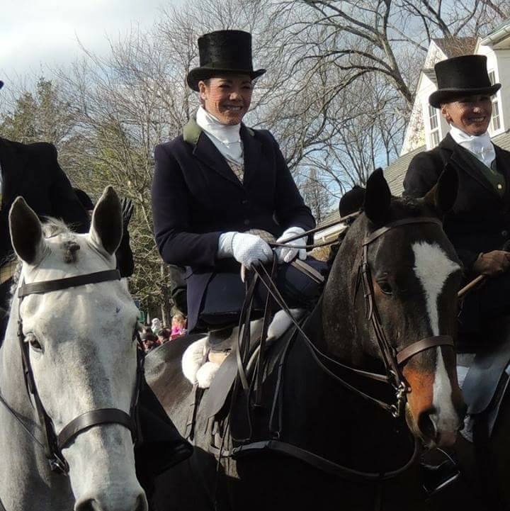 King of Hearts, 16.1 hh, Argentinian TB gelding. King is a first-field hunter, who occasionally shows in the side saddle division, and has incredible movement and jump. He is foot perfect in the hunt field, has always qualified for the N.American Field Hunter Champ. finals on the first day, and is the go-to guest horse. He routinely starts riders aside both in the ring, in the hunt field, and for side saddle steeplechasing. He was also a "TV star," having appeared in an episode of the Million Dollar American Princesses series on the Smithsonian channel.